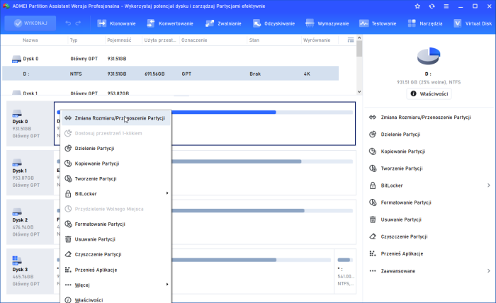 AOMEI Partition Assistant to zaawansowany program służący do zarządzania partycjami dysku twardego. Aplikacja obsługuje najważniejsze systemy plików – FAT, FAT32, NTFS, EXT2/EXT3, a także wszystkie najpopularniejsze nośniki danych z interfejsem SSD, IDE, SATA, eSATA, SCSI, Firewire oraz USB. Oprócz tego program oferuje dostęp do szczegółowych informacji odnośnie sprzętu i utworzonej partycji (system plików, pojemność dysku oraz dokładna ilość sektorów i cylindrów). System operacyjny: Windows 7+ (32/64-bit) OPiS UPLOADU