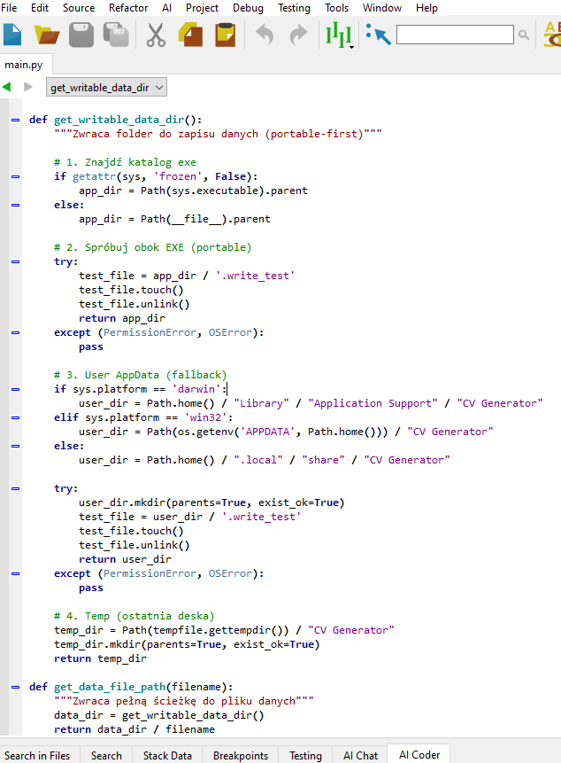 Wing Pro to zaawansowane środowisko IDE (Integrated Development Environment) przeznaczone dla programistów piszących w języku Python. Stworzone przez firmę Wingware, wyróżnia się wysokim poziomem narzędzi wspierających produktywność, debugowanie, analizę kodu oraz integrację z popularnymi technologiami. Wing Pro jest częścią rodziny narzędzi Wing IDE, w której znajdują się również wersje Wing Personal i Wing 101, dostosowane do różnych potrzeb użytkowników. Kluczowe cechy Wing Pro: Zaawansowany edytor kodu: * Automatyczne uzupełnianie kodu z analizą kontekstu. * Refaktoryzacja kodu (np. zmiana nazw, ekstrakcja funkcji). * Dynamiczna analiza kodu i wskazywanie błędów w czasie rzeczywistym. * Obsługa wielu języków w jednym projekcie, z naciskiem na Python. Potężny debuger: * Debugowanie lokalne i zdalne. * Śledzenie wartości zmiennych, punktów przerwania (breakpoints) i ścieżki wykonania. * Obsługa wielowątkowych aplikacji oraz programów asynchronicznych (asyncio). * Możliwość debugowania na żywo bez restartu aplikacji. Wbudowana obsługa testów jednostkowych: * Integracja z popularnymi frameworkami testowymi, takimi jak pytest, unittest czy nose. * Zarządzanie, uruchamianie i debugowanie testów z poziomu IDE. Personalizacja interfejsu: * Konfigurowalne skróty klawiszowe. * Możliwość dostosowania wyglądu i układu okien. * Wsparcie dla motywów kolorystycznych (np. tryb ciemny). Integracja z narzędziami zewnętrznymi: * Współpraca z systemami kontroli wersji, takimi jak Git, Mercurial czy Subversion. * Obsługa wirtualnych środowisk Pythona (virtualenv, conda). * Kompatybilność z Dockerem oraz systemami konteneryzacji. Wsparcie dla nauki i analizy danych: * Ułatwienia dla projektów z wykorzystaniem bibliotek, takich jak NumPy, pandas, TensorFlow czy matplotlib. * Wbudowane narzędzia do pracy z wykresami. Cross-platformowość: * Działa na systemach Windows, macOS i Linux. Wsparcie dla dużych projektów: * Rozbudowany system zarządzania projektami. * Szybkie przeszukiwanie kodu i nawigacja po projekcie. Zastosowanie Wing Pro: * Idealny wybór dla profesjonalnych programistów tworzących aplikacje webowe, naukowe, automatyzacyjne czy rozwiązania oparte na sztucznej inteligencji. * Sprawdzi się również w edukacji, gdzie nacisk kładzie się na dobrą organizację i zrozumienie kodu. System operacyjny: Windows 7+ (64-bit)
