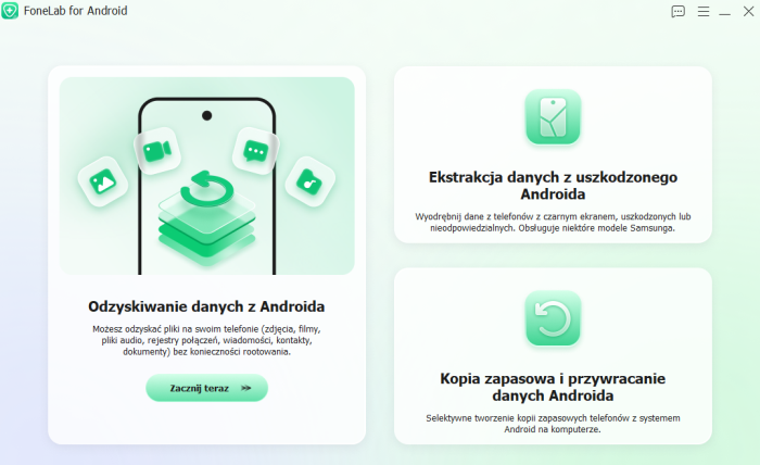 Aiseesoft FoneLab for Android to program przeznaczony do odzyskiwania danych z urządzeń mobilnych działających na systemie Android. Jest przydatny zarówno w sytuacjach przypadkowego usunięcia plików, jak i utraty danych wskutek awarii systemu, uszkodzenia telefonu czy problemów z kartą pamięci. Główne funkcje: Odzyskiwanie utraconych danych Przywraca usunięte zdjęcia, filmy, kontakty, wiadomości SMS, historię połączeń, dokumenty, a także dane z WhatsAppa. Obsługa różnych scenariuszy utraty danych Działa po przypadkowym skasowaniu plików, przy zresetowaniu urządzenia do ustawień fabrycznych, uszkodzeniu systemu, zawieszeniu telefonu czy ataku wirusa. Kompatybilność Wspiera tysiące modeli telefonów i tabletów z Androidem (Samsung, Huawei, Xiaomi, HTC, LG, Sony i wiele innych). Podgląd przed odzyskaniem Użytkownik może najpierw sprawdzić, jakie dane program znalazł, a dopiero później wybrać, które z nich przywrócić. Różne tryby odzyskiwania Z pamięci wewnętrznej telefonu, karty SD lub nawet z uszkodzonego urządzenia. System operacyjny: Windows 7+ (32/64-bit)