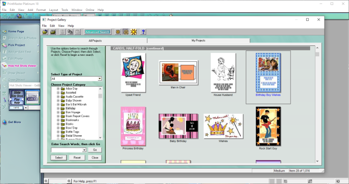 PrintMaster Gold to intuicyjny program graficzny do tworzenia i drukowania materiałów kreatywnych, takich jak kartki okolicznościowe, zaproszenia, plakaty, kalendarze, banery czy albumy. Oprogramowanie skierowane jest głównie do użytkowników domowych, nauczycieli, hobbystów i osób, które chcą w łatwy sposób przygotować efektowne projekty bez potrzeby korzystania z zaawansowanych narzędzi graficznych. System operacyjny: Windows 7+ (32/64-bit) OPiS UPLOADU
